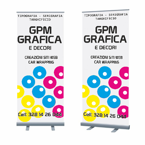Sistema espositivo portabanner autoavvolgente. La stampa (banner) viene ospitata nella base. Il banner viene fissato alla base con adevivo e nella parte superiore è fissato al profilo grazie al sistema a scatto tipo click-clack. Aggancio sull’asta con occhiello in plastica. Sul fondo della base è presente una lastra zincata per aumentarne la stabiltà.
